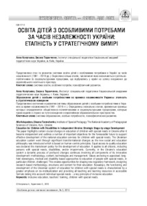 Освіта дітей з особливими потребами за часів незалежності України- етапність у стратегічному вимірі.pdf - Published Version Download (540kB) | Preview |