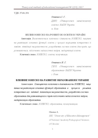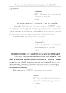 - Отамась, Інна Григорівна (orcid.org/0000-0002-3098-2274) (2017) Influence of UNESCO is on development of education in Ukraine Теорія та методика управління освітою, 1 (19). ISSN 2310-2411