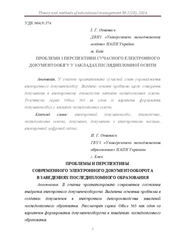 The article analyzes the current state of implementation of electronic document workflow. The author draws attention to the main problems of creations of documents in the electronic document management of postgraduate institutions. Office 365 service is considered as one of the options of forming the document in postgraduate institutions.