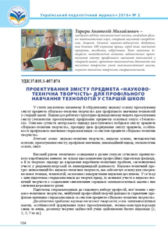 - Тарара, Анатолій Михайлович (2016) Projecting the content of the subject “Research and technology creativity” for the profession-oriented teaching of technologies at the high school Український педагогічний журнал, 2. pp. 104-111. ISSN 2411-7420