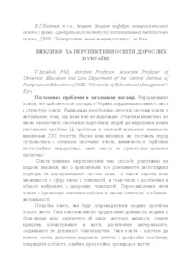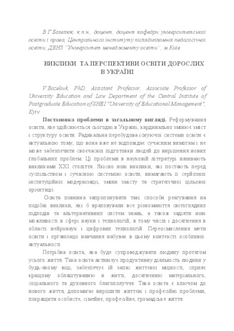 - Базелюк, В.Г. (2017) Challenges and prospects adult education in Ukraine Освіта дорослих у перспективі змін: інновації, технології, прогнози. pp. 58-68.