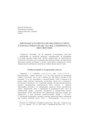 - Ничкало, Нелля Григорівна (orcid.org/0000-0002-5989-5684) (2011) Innovation in the professional education development in terms of labour market: experience, contradictions, prospects Professional education: pedagogy and psychology (13). pp. 91-103. ISSN 2083-2753