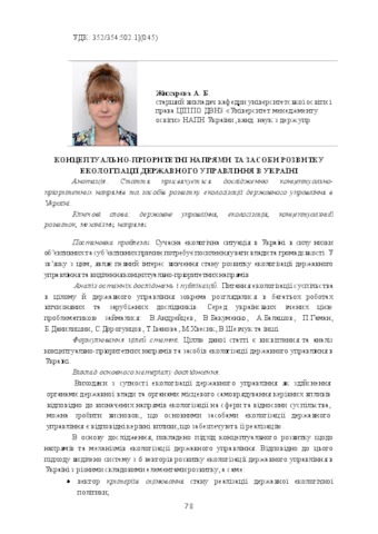 The article is devoted to the research of conceptual-priority ones directions and means of development of ecologization of public administration in Ukraine.