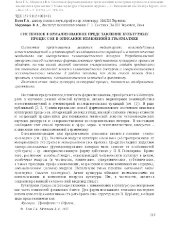 - Балл, Георгій Олексійович and Мєдінцев, Владислав Олександрович (orcid.org/0000-0002-5171-0139) (2015) System formalized representation of cultural processes in the description of changes in grammar Мова і культура, 1(176) (18). pp. 219-224.