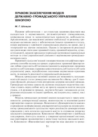 - Шевцов, М.Г. (2016) Legal support of the model of state and public administration school In: Анотовані результати науково-дослідної роботи Інституту педагогіки НАПН України за 2016 рік . Педагогічна думка, м. Київ, Україна, pp. 51-52. ISBN 966-644-398-5