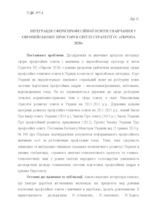 VET politics in the EU countries within the meaning of the EU Strategy “Europe 2020” are analysed in the article. The incentives and tools of European educational integration to realise the aims and tasks of the EU Strategy are represented. The attention is also paid to the modernization of VET field of Ukraine in the context of European integration.