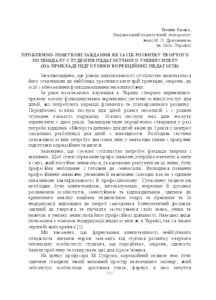 - Єжова, Т.Є. (2018) Problem-search tasks as a means of developing the creative potential of students of the pedagogical university (on the example of training correctional teachers) Інтернаціоналізація вищої освіти України: концептуальні засади, здобутки, проблеми, перспективи розвитку : матеріали Міжнар. наук.-практ. конф. (м. Київ, 15-16 груд. 2017 р.). pp. 115-117. ISSN 978-617-7212-94-1