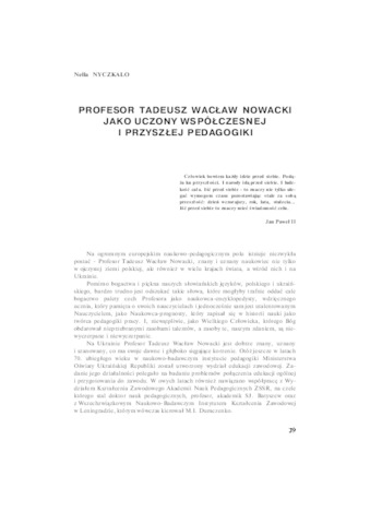 - Nychkalo, Nellia (orcid.org/0000-0002-5989-5684) (2008) Professor Tadeusz Wacław Nowatski as a scientist of modern and future pedagogy Badanie. Dojrzewanie. Rozwój (95-lecie urodzin Profesora Tadeusza Nowackiego). pp. 39-44.