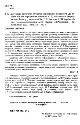 - Мусатов, Сергій Олександрович (2002) Просоціальні засади розбудови загальноосвітньої школи Актуальні проблеми сучасної української психології. До 60- річчя від дня народження академіка С. Д. Максименка: Наукові записки Інституту психології ім. Г. С. Костюка АПН України (22). pp. 230-240. ISSN 966-7837-34-3