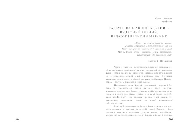 - Ничкало, Нелля Григорівна (orcid.org/0000-0002-5989-5684) (2011) Tadeush Novatskiy is an outstanding scientist, educator and great dreamer Світ мрій. pp. 109-116.