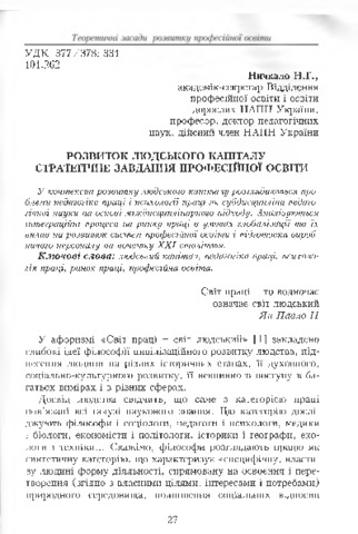- Ничкало, Нелля Григорівна (orcid.org/0000-0002-5989-5684) (2012) The development of peapels capital — strategy of the task of proffetional education Педагогічна і психологічна науки в Україні, 4 (5). pp. 27-43.