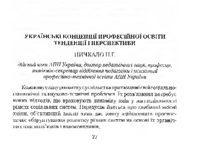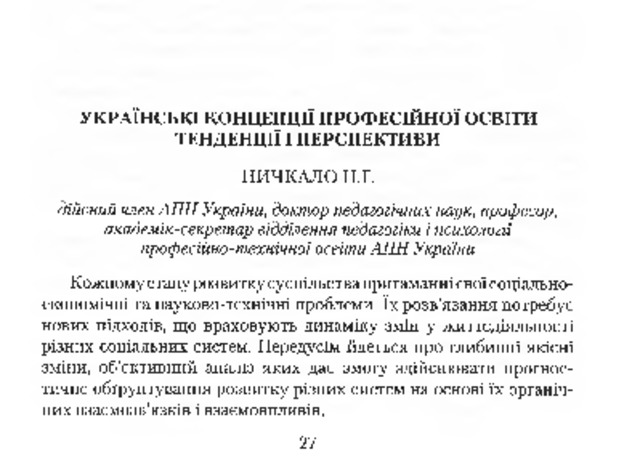 - Ничкало, Нелля Григорівна (orcid.org/0000-0002-5989-5684) (2007) Ukrainian Concepts of Professional Education. Trends and Prospects Педагогічна і психологічна науки в Україні (5). pp. 27-50.