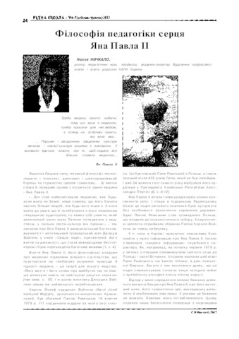 - Ничкало, Нелля Григорівна (orcid.org/0000-0002-5989-5684) (2012) Philosophy of pedagogy of the heart of John Paul II Рідна школа, 4-5 (988). pp. 24-31. ISSN 0131-6788