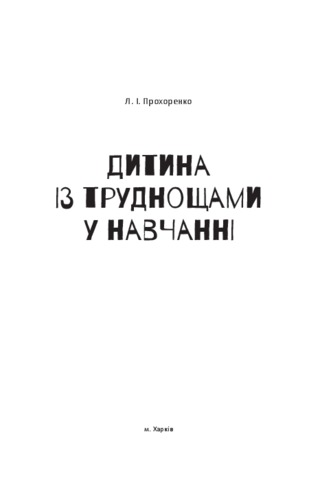 Прохоренко Л. І. Дитина із труднощами у навчанні / Л. І. Прохоренко. — Харків: Вид-во «Ранок», ВГ «Кенгуру», 2018. — 48 с. — (Інклюзивне навчання).