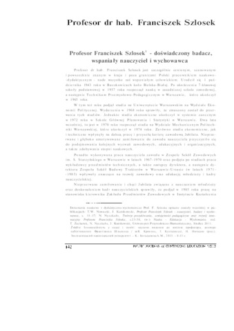 - Nychkalo, Nellia (orcid.org/0000-0002-5989-5684) (2013) Professor Franciszek Szlosek - an experienced researcher, a great teacher and educator Edukacja ustawiczna Dorosłych. Polish Journal of Continuing Education, 4 (83). pp. 142-147. ISSN 1507-6563