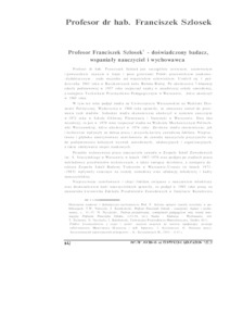 The article briefly outlines the professional and research path of the famous Polish scientist, professor Franciszek Szlosek.