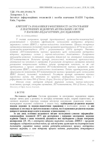 - Лупаренко, Л. А. (2018) Criteria and indicators of the applying efficiency of electronic open journal systems in the pedagogical researches Інформаційні технології в освіті, 1 (34). pp. 89-117. ISSN 1998-6939