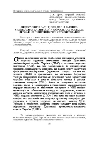 Дидактичні засади викладення тактико-спеціальних дисциплін у навчальних закладах Державної пенітенціарної служби України.pdf - Published Version Download (314kB) | Preview |
