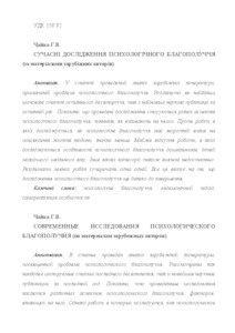 - Чайка, Г.В. (orcid.org/0000-0001-7799-1314) (2018) Modern research of psychological well-being (according to the materials of foreign authors) Актуальні проблеми психології: Психологія особистості. Психологічна допомога особистості, 17 (11). pp. 244-262. ISSN 2072-4772