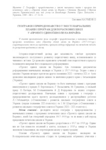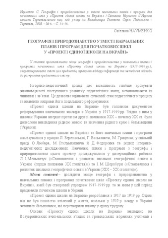 - Науменко, С.О. (2008) Geography and natural science in the content of curriculums and educational programs for primary schools in the «Project of a unified school in Ukraine» Наукові записки Тернопільського національного педагогічного університету імені Володимира Гнатюка. Серія: педагогіка (6). pp. 34-38. ISSN 2415-3605