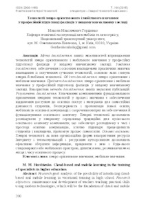 Research goal: analysis of the possibility of introducing cloud-based and mobile learning in vocational training in high school. Research objectives: maintenance and development of teachers teaching practical skills using modern technologies, which will be the foundation of cloud and mobile technologies. Object of research: cloud-based and mobile learning. Subject of research: cloud-based and mobile learning in the training of specialists in higher education. Research methods used: analysis of publications. Results of the research. The key components of the functionality of cloud technology in teaching is to provide remote access to educational services and materials for independent work of students, the continuity and extension of their education, mobility of educational communication and reduce costs of operation and educational content. Cloud technology can be placed in a cloud environment, traditional university educational content component, providing distributed in time and space educational communication, significantly increases the performance of students and teachers, prolongs the process of self-education. The main conclusions. The cloud as a new organizational form of the use of Internet resources and communications with resource outsourcing can effectively store information, work with it from any fixed or mobile device, share it, blurring the boundaries of time and place educational process.