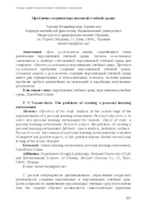 - Тарнавська, Т.В. (2015) The problems of creating a personal learning environment Новітні комп’ютерні технології. Спецвипуск «Хмарні технології в освіті» (13). pp. 285-289. ISSN 2309-1460