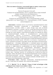 Research objectives: to analyze the experience of cloud technologies in education, namely the usage of sites in the Google Apps environment to study mathematics and physics in secondary school. The research goal is to determine the efficiency of this approach by analyzing site traffic statistics over a long period and geographic location of users. Object of research: using of cloud technologies in education. Subject of research: the using of cloud technologies while studying of mathematics and physics in secondary school. Research methods used: theoretical – analysis of government programs, scientific and methodological literature; empirical – learning, supervision over educational process, the analysis of statistical data. The results of the research obtained allow to determine the quality and effectiveness of the materials posted on the website. Website demonstrates compliance of the materials with international standards of education. Constant increase in the number of visitors of website of teachers of mathematics and physics demonstrates the growth of level of teaching exact sciences. Conclusions about the relevance and efficiency of cloud sites methodical and scientific direction for secondary school pupils was done. Application of cloud technology allows you to expand qualitatively organized educational process at virtually unlimited audience.