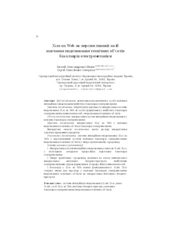 - Модло, Євгеній Олександрович (orcid.org/0000-0003-2037-1557) and Семеріков, С.О. (orcid.org/0000-0003-0789-0272) (2018) Xcos on Web as a promising learning tool for Bachelor’s of Electromechanics modeling of technical objects Proceedings of the 5th Workshop on Cloud Technologies in Education (2168). pp. 34-41. ISSN 1613-0073