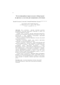 - Козловский, Е.О. and Кравцов, Г.М. (orcid.org/0000-0003-3680-2286) (2018) Multimedia virtual laboratory for physics in the distance learning Proceedings of the 5th Workshop on Cloud Technologies in Education (2168). pp. 42-53. ISSN 1613-0073