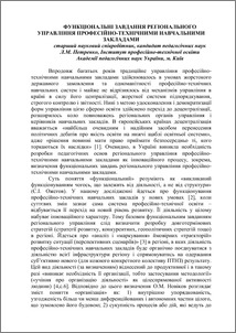 Визначені функціональні завдання регіонального управління професійно-технічними навчальними закладами на сучасному етапі реформування вітчизняної освітньої системи, якими слід вважати: моделювання професійної освіти і навчання в регіоні з урахуванням його специфіки; визначення мети і цілей управління нею, які відображатимуть кінцевий результат діяльності; розробку довготермінових стратегій її розвитку, в яких діяльність навчальних закладів буде органічно поєднуватися з діяльністю всієї інфраструктури регіону і спрямовуватись на одержання суб’єктивно нового результату.