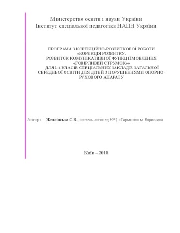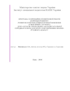 - Жеплінська, С.В. (2018) The program from the correctional and developmental work "Correction of the development. Development of communicative speech function "Talkative stream"" for grades 1-4 for children with impaired musculoskeletal system [Teaching Resource]