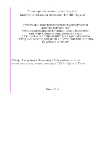 The program from the correctional and developmental work for special schools of general secondary education for children with impaired musculoskeletal system "Correction of the development. Formation of linguistic concepts based on the use of associative schemes" (grades 1-4) is presented.