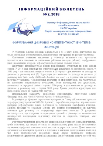 - Іванюк, І.В. (orcid.org/0000-0003-2381-785X) (2018) Formation of the digital competence of teachers in Finland ІІТЗН НАПН України, м. Київ, Україна.