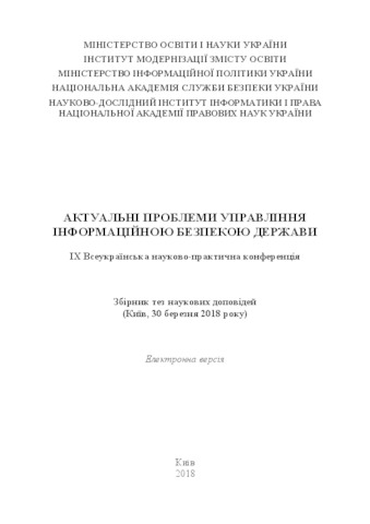 - Спірін, О.М. (orcid.org/0000-0002-9594-6602) and Юдін, О.К. (2018) Conceptual issues of professional certification of information and cyber security specialists in Ukraine In: Актуальні проблеми управління інформаційною безпекою держави : ІХ Всеукр. наук.-практ. конф. (Київ, 30 берез. 2018 р.) . Національна академія Служди безпеки України, м. Київ, Україна, pp. 156-158.