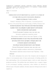 The article substantiates the need of the formation and development of culture of environmental safety of future professionals of building profiles for their understanding of the environmental impacts which are made during their production activities. The problem that most industries have a negative impact on the environment, including construction, where builders are affected by different types of hazards (radiation, chemical, physical, biological and social) is singled out. The thing that teachers of special subjects should involve an environmental component to their own educational activities using project-based learning, which aims at solving professional issues, helps motivate students for learning activities, independent work in the pursuit of knowledge, etc. is indicated. In addition, the author proved that an essential part of certain decisions and actions that are taken in order to solve the problems of environmental safety is embodied in the "green" construction. In research the relevant conditions that effect on the success of project-based learning are identified: desire and interest to implement project activities of pupils and students and teachers, some successful experience of implementing of project-based learning in some vocational schools, formed personal skills of vocational students (design, research, communication, presentation and reflexive), important for project-based learning, etc.) and their experimental evaluation in vocational schools of building profile is conducted. A professional implementation in schools integrated system design training and methodological support of activities that can be realized through the development of training cycles, game, distressed and situational exercises is offered.