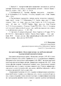 - Коваленко, С. Г. (orcid.org/0000-0002-5836-6422) (2018) Authoritative file "Collective authors" as a means of identification and representation of a scientific institution Збірник матеріалів ХІ Всеукраїнської науково-практичної конференції "Бібліотека і книга в контексті часу", тема року "Трансформація діяльності публічних бібліотек України". pp. 119-122.