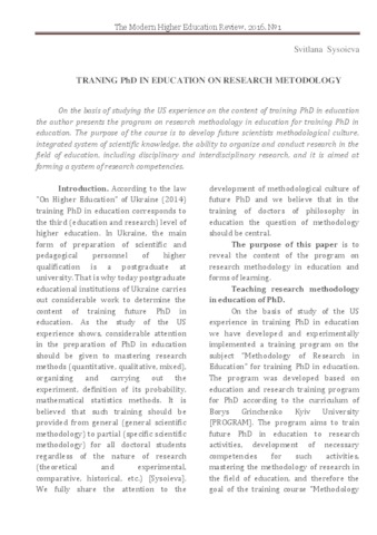 - Sysoieva, Svetlana (orcid.org/0000-0003-2499-732X) (2016) Training PhDs in education on research methodology The Modern Higher Education Review (1). ISSN 2518-7635