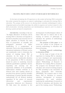 On the basis of studying the US experience on the content of training PhDs in education the author presents the program on research methodology in education for training PhDs in education. The purpose of the course is to develop future scientists methodological culture, integrated system of scientific knowledge, the ability to organize and conduct research in the field of education, including disciplinary and interdisciplinary research, and it is aimed at forming a system of research competencies.