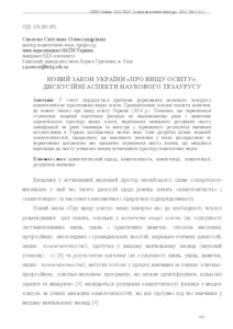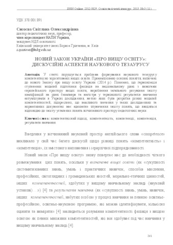 - Сисоєва, С.О. (orcid.org/0000-0003-2499-732X) (2015) The new law of Ukraine «On higher education»: discussion aspects of the science thesaurus Освітологічний дискурс, 3 (11). pp. 261-269. ISSN 2312-5829