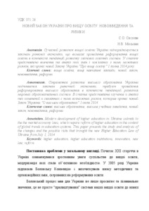 Modern development of higher education in Ukraine submits to the the market economy laws, which require reform of higher education in the context of global trends in education systems. This paper presents the study and analysis of the changes and the possible risks that brought the new Higher Education Law of Ukraine from July 1, 2014.