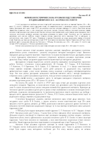 - Косенко, Ю. М. (2015) Formation of historical knowledge in mentally retarded children in Soviet Ukraine in the 50 - 60 year Науковий часопис Національного педагогічного університету імені М. П. Драгоманова. Серія: Корекційна педагогіка та спеціальна психологія, 29 (19). pp. 49-54. ISSN 2310-0893