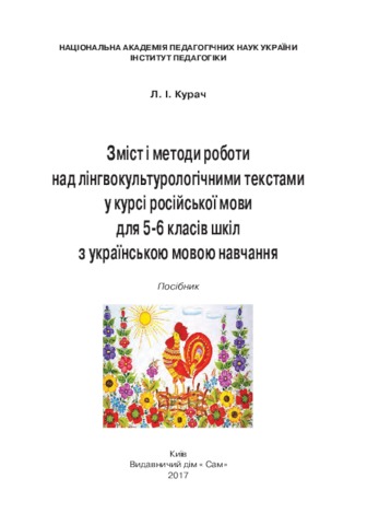 Курач, Лариса Іванівна (2017) Contents and methods of work on linguistic and cultural texts in the course of Russian language for 5-6 grades of schools with Ukrainian language of instruction (in Russian) . Видавничий дім "Сам", м. Київ, Україна. ISBN 966-8714-22-9