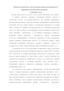 - Слободяник, О.В. (2018) Mobile technologies as a means of activating cognitive activity in natural and mathematical disciplines In: Збірник матеріалів Міжнародної науково-практичної конференції "Актуальні проблеми природничо-математичної освіти в середній і вищій школі" . Видавництво ХНТУ, м. Херсон, Україна, pp. 19-21.