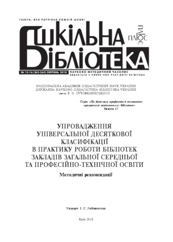 | Additional Information: | Серія „На допомогу професійній самоосвіті працівників освітянських бібліотек” ; вип. 17 |