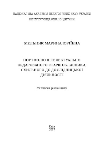 - Мельник, Марина Юріївна (orcid.org/0000-0001-6581-5129) (2017) Portfolio of an intellectually gifted high school senior prone to research activity [Teaching Resource]