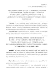 The article analyzes the interactive forms and methods and technologies used by the scientific and pedagogical staff of the department of open educational systems and information and communication technologies at the distant stage of conducting advanced training courses.