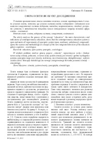 The article analyzes the genesis of the concept “education”, the main characteristics and indications of contemporaneous education; shows that the contemporaneous education system is open and meets all requirements of synergetic system (open, nonlinear, unbalanced, compound); opens the essence and methodological concepts of the new integrated direction of the education sphere cognition – osvitologiya.