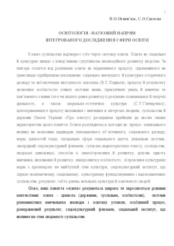 - Сисоєва, С.О. (orcid.org/0000-0003-2499-732X) and Огнев’юк, В. (orcid.org/0000-0002-8671-3348) (2012) Osvitologia – the scientific approach to the integrated study of the sphere of education Рідна школа, 4-5. pp. 44-51.