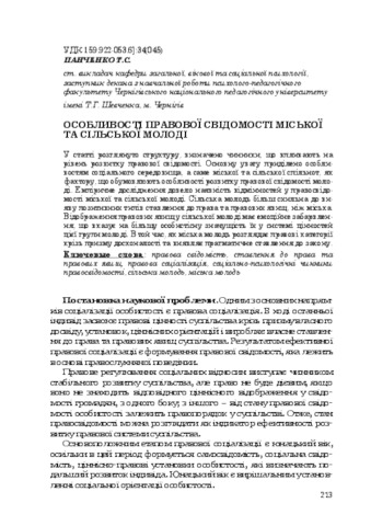 - Панченко, Тамара Степанівна (2017) Peculiarities of legal consciousness of urban and rural youth Актуальні проблеми психології, 44 (7). pp. 213-222. ISSN 2072-4772