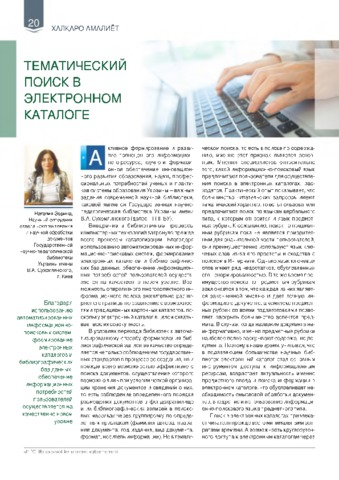 - Зоріна, Наталія Євгенівна (2018) Subject search in the electronic catalog INFOLIB, 3 (15). pp. 20-25. ISSN 2181-8207